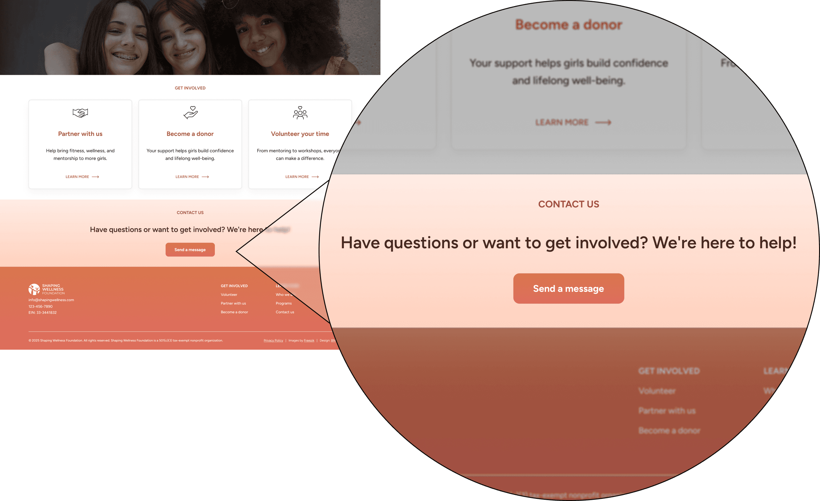 Clear flows with multiple call-to-action buttons and an organized information architecture so users never feel lost. The site was designed to minimize friction and make it easy for users to take action, whether that’s donating, volunteering, or learning more.